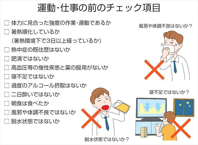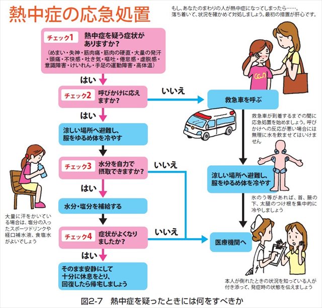 こちらは熱中症になってしまった時は何をすべきか?というポイントが記載されています。