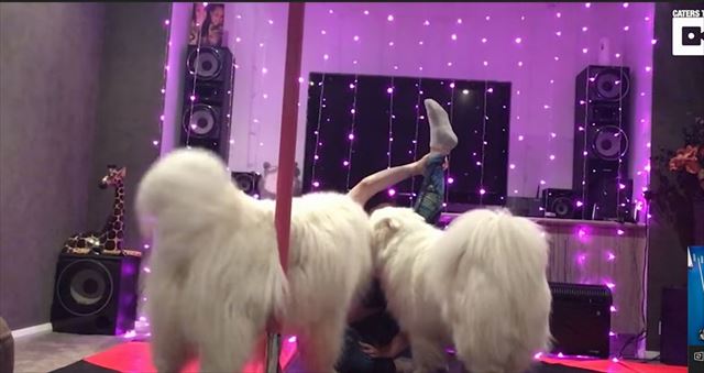 ワンコたちの抑えられない気持ちがすごく伝わって微笑ましいですね。飼い主さんのヨガポーズなんてお構いなし!って感じなのがまた可愛いね(笑)