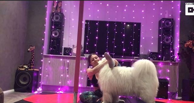 しかし、一緒に暮らす2匹のサモエド犬に愛されすぎて全くヨガに集中できないのです!