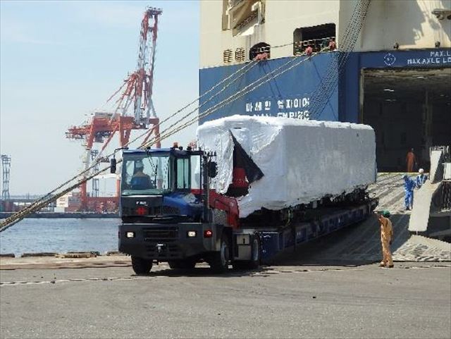 大黒ふ頭に到着した500形車両。アルゼンチンでの役目を終えて日本へ帰還!