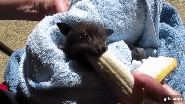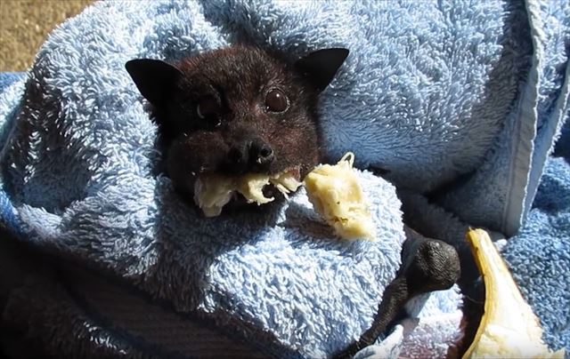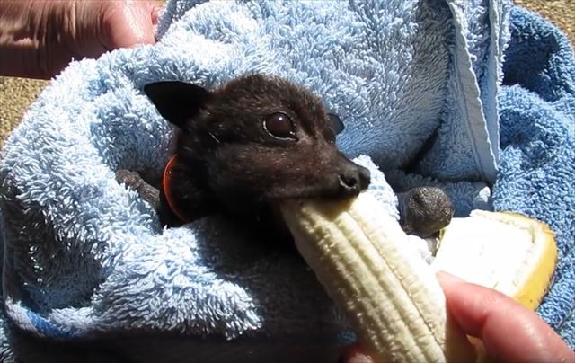 母を亡くしたコウモリの赤ちゃんを保護。バナナをスゴイ勢いで食べる様子を撮影した動画が話題となっています!