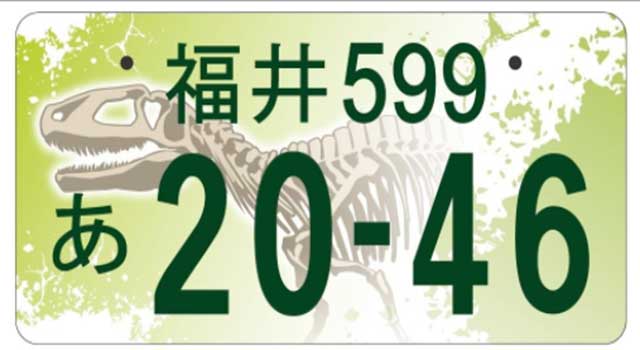 両者とも対象車種は「登録自動車(自家用、事業用)」および「軽自動車(自家用)」。モノクロのプレートは、1枚7,000円、カラーは8,000円で販売予定とのこと。恐竜のモデルは福井県で発掘された肉食恐竜「フクイラプトル」。日本で発見された肉食恐竜として、初めて全身骨格が復元されてものだそうです。