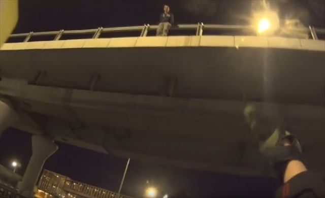すると、考えを改めたのか、男性は手すりをくぐり飛び降りることをやめたようです。
