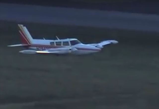 滑走路に向かい、低空飛行中の小型飛行機。乗っているのは、パイロットのアンソニー・ジェイムズ・カプチージさんのみ。胴体着陸で燃料への引火による火災を起こさないようにするため、事前に周辺を90分間飛行してきました。