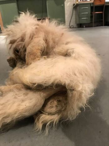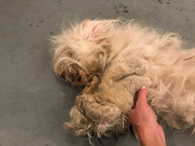 ▼ <Before> 脚や尻尾の部分もひどい状態だった剃る前のホーランドちゃん