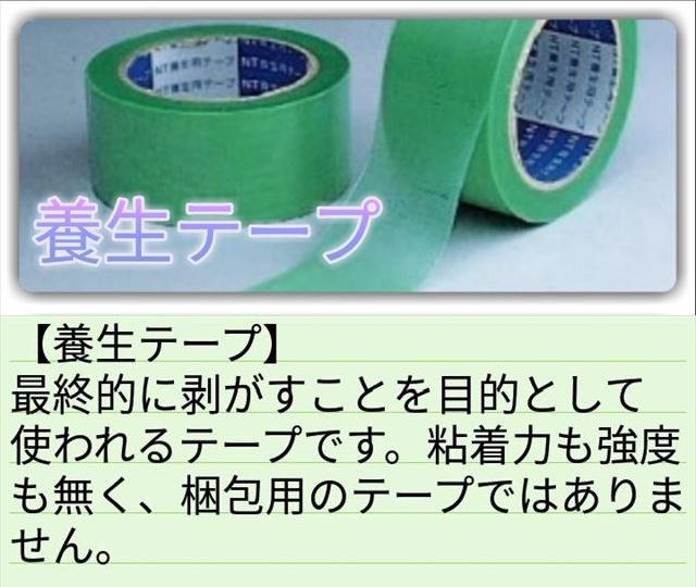 養生テープは手で簡単に切りやすく剥がれやすいので、梱包には適さないみたいですね。