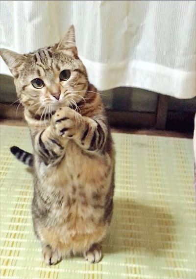 まるで人間のように手を合わせてこちらを見ていて超可愛いですね♡
