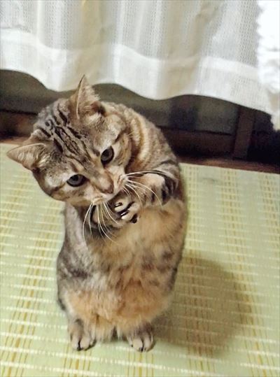 でも実はこのポーズ、実際におねだりをしているのではなく、猫じゃらしで遊んでいる時に撮った写真だったのです。その時の動画があるのでご覧ください!