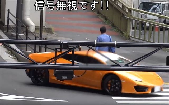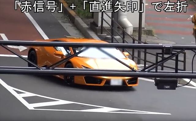 すると、直進矢印の赤信号であるにも関わらず、ランボルギーニは左折します。