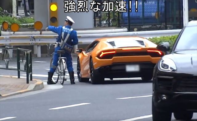 その後、ランボルギーニを検挙。フルスロットルの加速により、あえなく御用となりました。