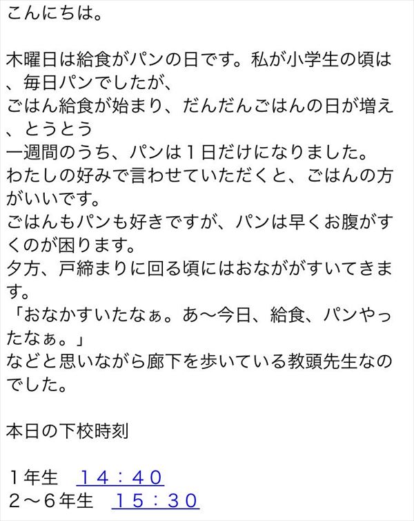 そのメールにいつも書かれてある教頭先生のコメントがめちゃくちゃ癒されると話題になっています!