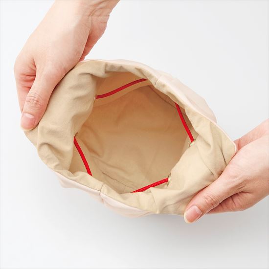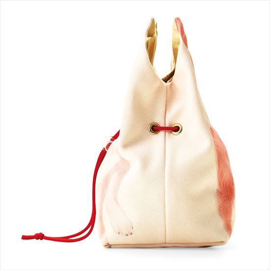 非常にユニークな発想のきんちゃく袋が登場しました。巾着のひも部分をお散歩のリードに見立てており、引っ張ると、きんちゃく袋の口が閉まって“イヤイヤ状態”に…!!