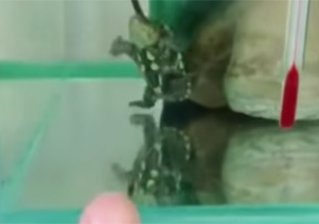 ミニカメちゃんにこんな習性があったなんて、初めて知りました。こりずに何度も飼い主さんの指に向かっては、ビックリして飛んでいってしまうカメちゃんがとっても愛くるしいですね。この無限ループは、不思議に見ているほうもクセになってしまいます。ぜひ動画もご覧ください!