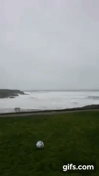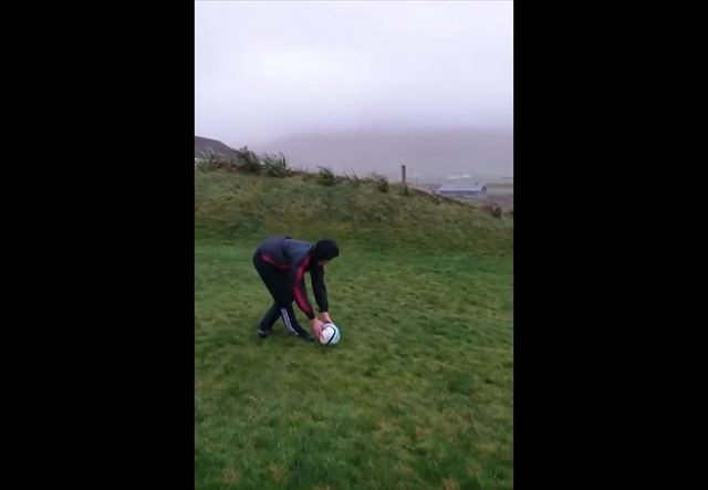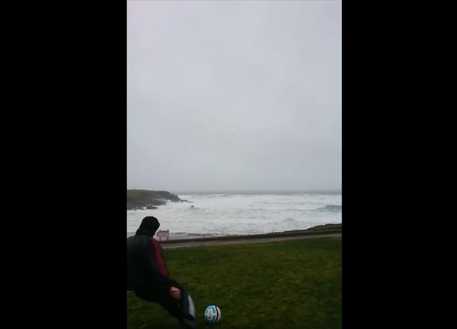 海に向かって高々と蹴り上げたボールがまさかの軌道を描く驚愕の映像をご紹介します!