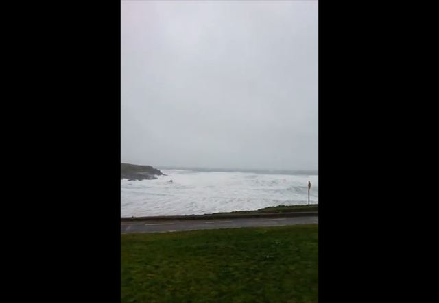 どこに向かって蹴るのかといえば、天候が悪く波が荒れている海です。上空にはかなりの強風が吹いています。