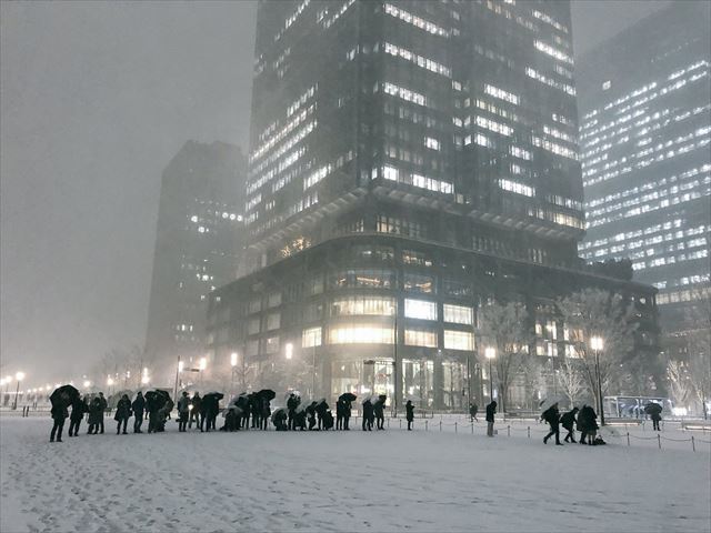 大雪が降っていても、東京駅の美しい光景を撮影したくなるこのみなさんの気持ちがすごく分かるような気がします。