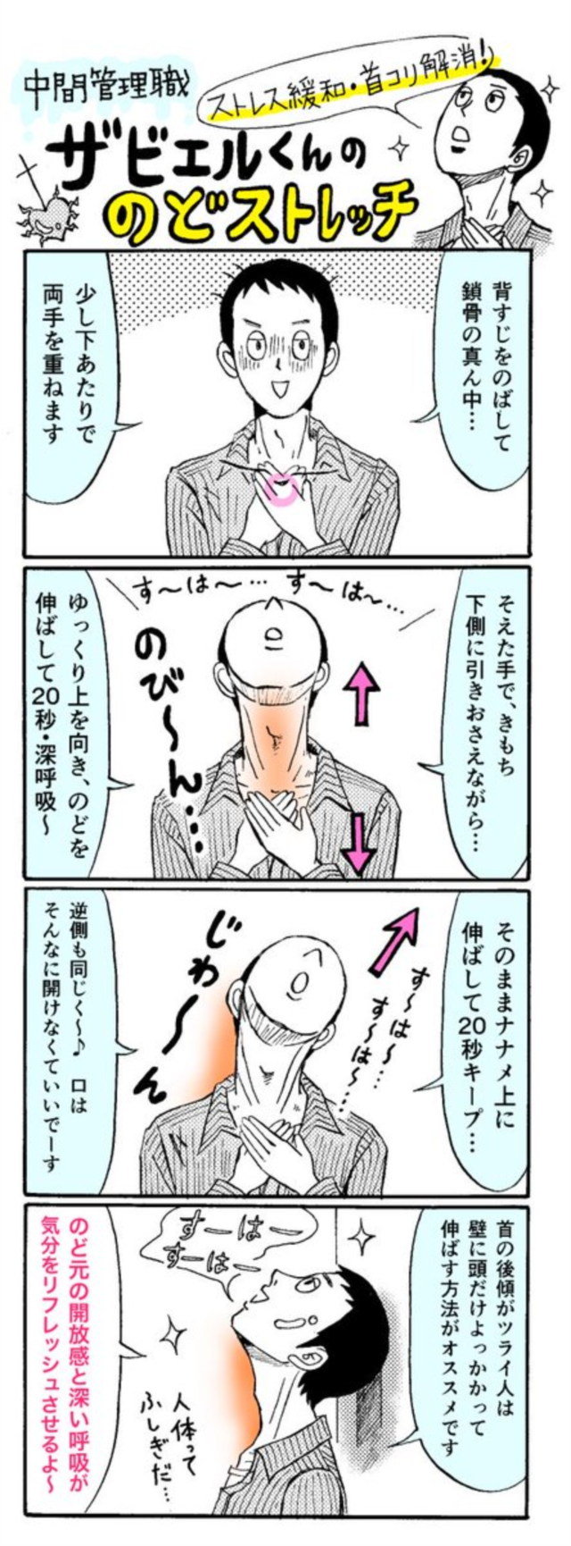 2.ストレスで息苦しい…「のど伸ばし」で緊張とコリをほぐすべし!