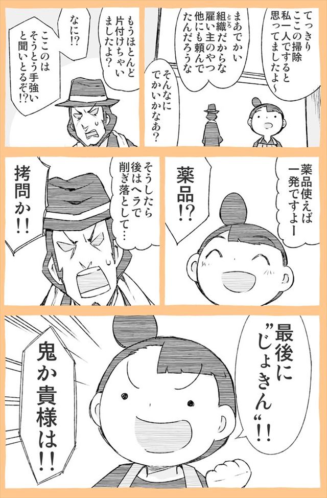 なんだ、アンジャッシュ感か… と思わせておいてガチの‘‘掃除屋’’だったというオチ。 嫌いじゃない、寧ろ好き。