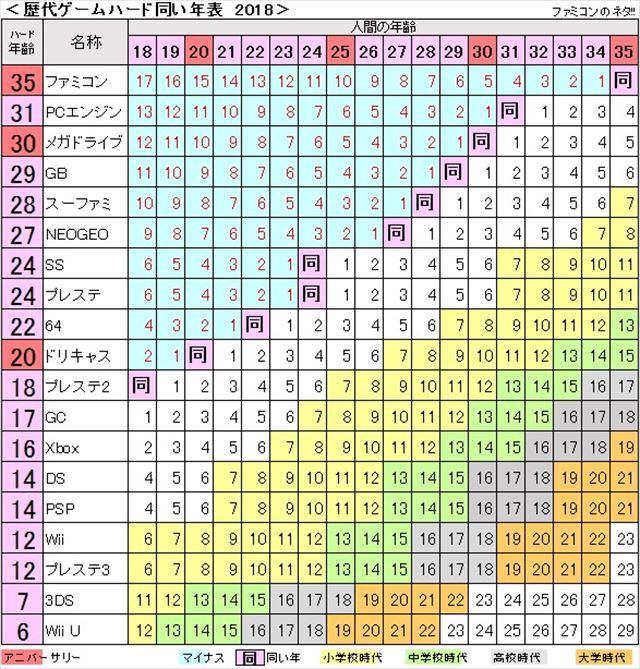 「じゃあ、ロクヨンと同じだね」こんな会話がすぐできる。歴代ゲーム機「同い年」早見表2018年版が完成しました!! pic.twitter.com/LGWba4x6qc