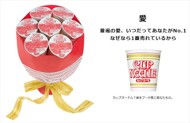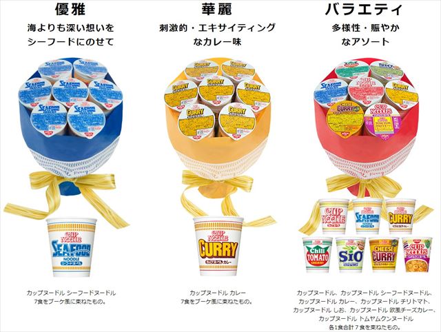 カップヌードルでお馴染みの日清が、なんと花束ならぬ世界初の『ヌードルブーケ』を2月5日(月)から販売開始しました!