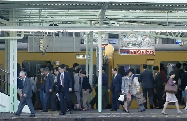 こんな感じで総武線の通勤ラッシュの模様も。今と変わらぬ風景がそこにはあります。