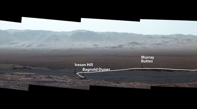 動画では、火星探査機のキュリオシティの旅路が映されています。同機が2017年10月に撮影した16枚の画像を元に作成したそうです。