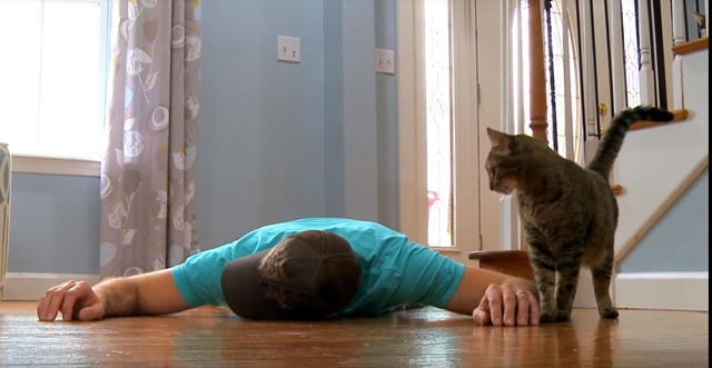 アメリカの人気ユーチューバーである”Mr.Serfty”が自身の飼い猫に実験を行いました。その実験とは『飼い主が突然倒れたら、うちの猫はどんな反応するのか?』というもの。