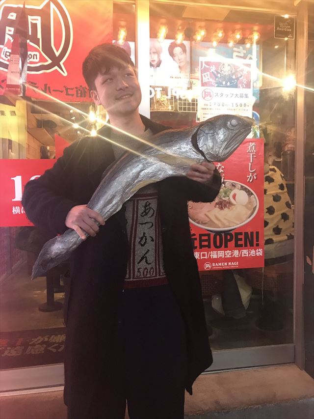 巨大な煮干しの彫刻… 凄まじいインパクトですよね。投稿されたのは「にぼし悠二郎」(リングネーム)として活躍されているプロボクサーであり、「すごい煮干ラーメン凪」(新宿ゴールデン街別館(歌舞伎町店)に勤務されている大曽根悠二郎(凪のバンタム)@bantam26さん。