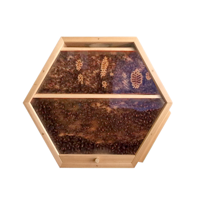 養蜂箱は壁掛け式で、部屋の中でも設置でき、蜂は付属のチューブを通って中と外を出入りする仕様!