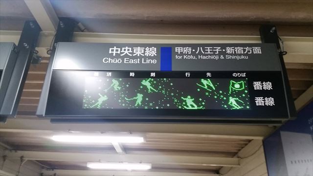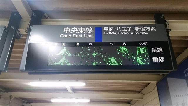 まさにいま平昌オリンピックが開催されているので、発車標には日本の国旗やアイスホッケーなどの競技種目が描かれていますね。