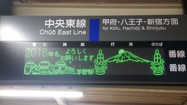 ちなみに茅野駅の発車標は今回のみならず、年が明けた元旦にもこのようにドット絵で新年の挨拶を表示していました!