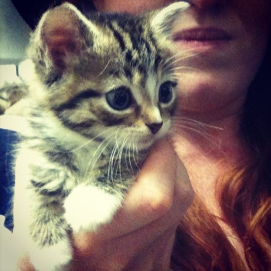 まだ生後8週間の野良猫を見たクリスさんは心配になり、すぐに保護し動物病院に連れていきました。