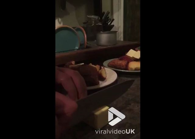 崩れそうで崩れないバター。ほどよい緊張感があって、思わず見入ってしまいます。