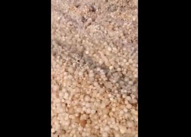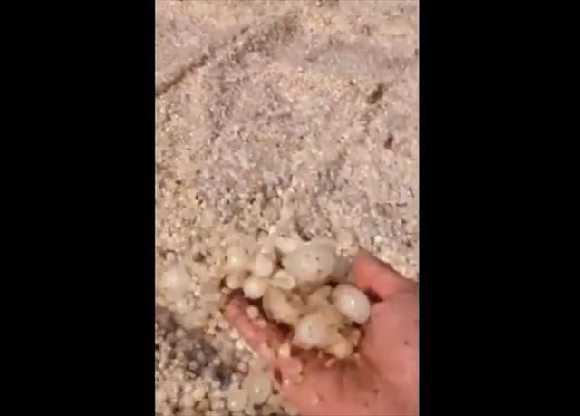砂が流れている時点で驚きなのですが、さらに驚くべきことに、砂に見えたものは「雹」だったのです…!!