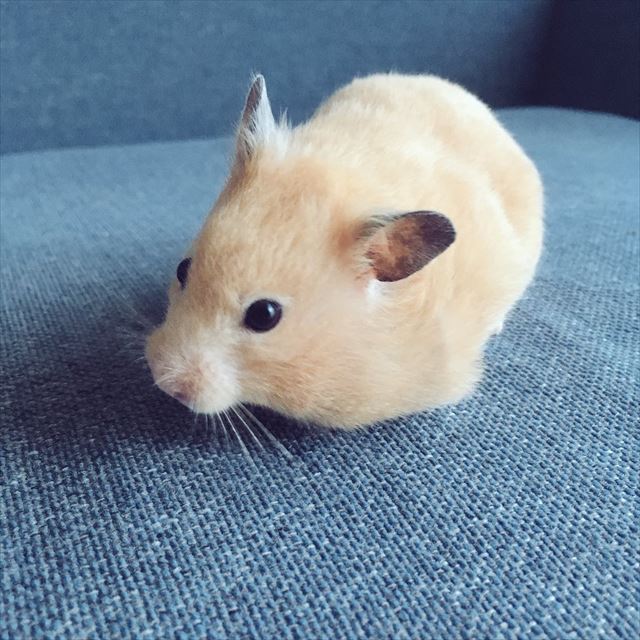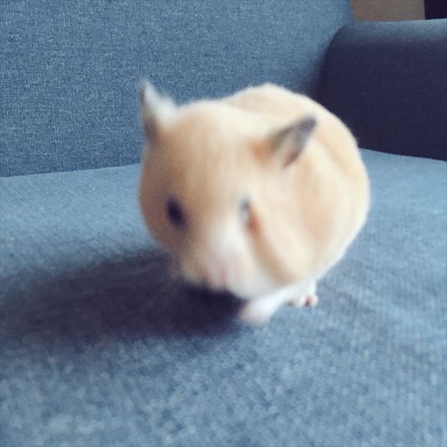 こちらはキンクマハムスターの「うに」ちゃんです。キュウリを抱えてむしゃむしゃと…。つぶらな瞳といい、とってもカワイイですよね。ゆっくりと食べていると思いきや次の瞬間…!!