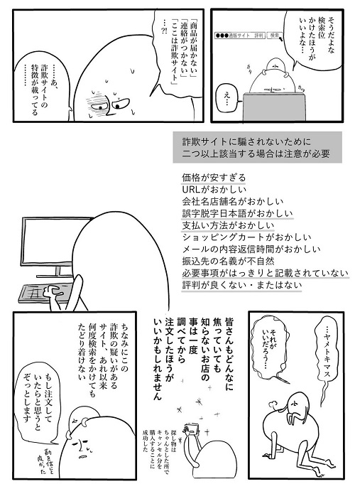 詐欺サイトにあやうく引っかかりそうになった体験談を描いた漫画が、Twitterで話題になっているのでご紹介します。
