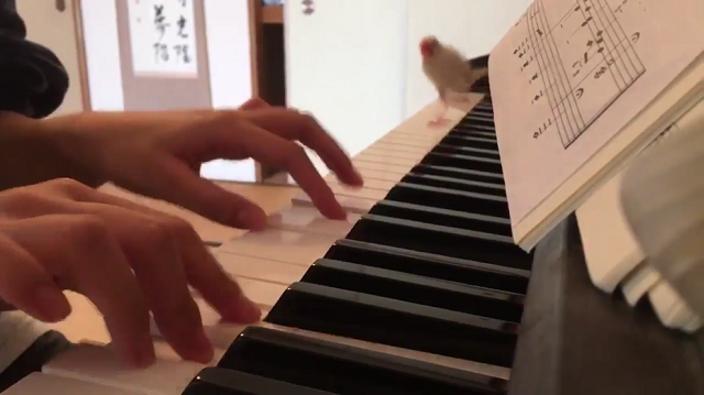 ピアノの鍵盤の上にちょこんと佇む姿が、とっても可愛らしい文鳥さん。ところが、どうやらちょっとご機嫌ナナメのようです! 一体何に怒っているのでしょうか?