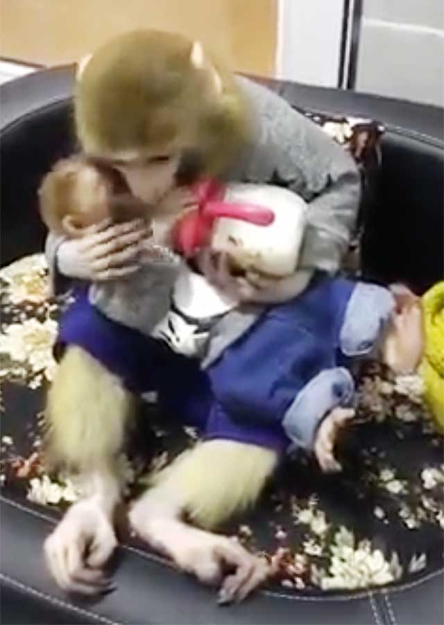ママザルが子ザルにミルクをある姿が可愛すぎてキュン死レベル!