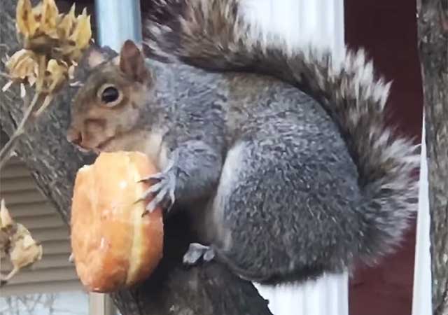 筆者は、リスは野原で優雅に木の実を食べてるイメージが強かったせいか、この光景には衝撃を受けました。しかも、このドーナッツは誰かに貰ったのか、落ちていたものなのかも細やかながら気になるところ。いずれにしても、この木の上で必死にドーナッツを食べるリスちゃんの姿に遭遇する可能性は稀有だと思われます。ぜひ動画でもご覧ください!