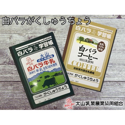 白バラ牛乳と白バラコーヒーをモチーフとした学習帳!