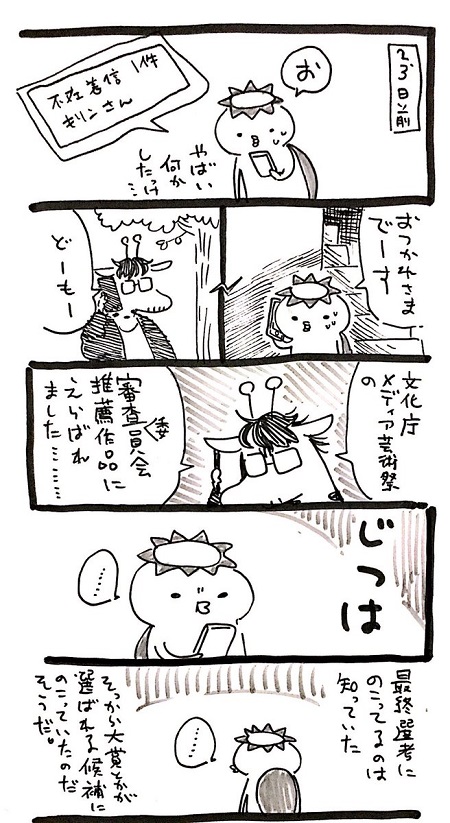 「モディリアーニにお願い」が、文化庁メディア芸術祭漫画部門の、審査委員推薦作品に選ばれました!わー!!推薦だ!嬉しい!ありがとうございます!
