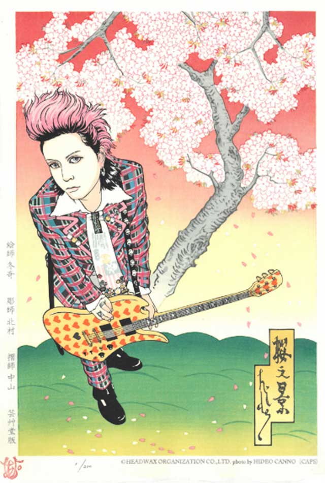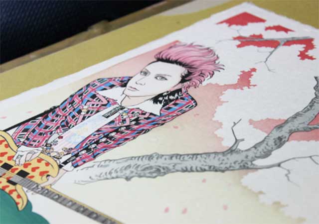 そんな約束を果たすかのように、X Japanのhideさんが、浮世絵木版画「hide桜の景」として甦りました!あれから20年。hide 20th Memorial Projectとして、浮世絵木版画が制作されました。ファンの気持ちを代弁するように原画を作成されたのは、hideのファンの1人である京の町絵師、深谷冬奇氏。