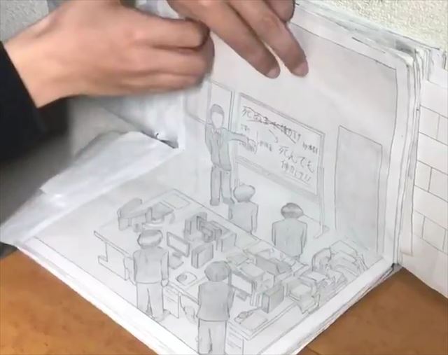 このような感じでノートをめくっていく形式の漫画なのですが、動画ではBGMの印象も相まって、胸に響いてくるものがあります。途中、考えたくもない辛い展開に!?