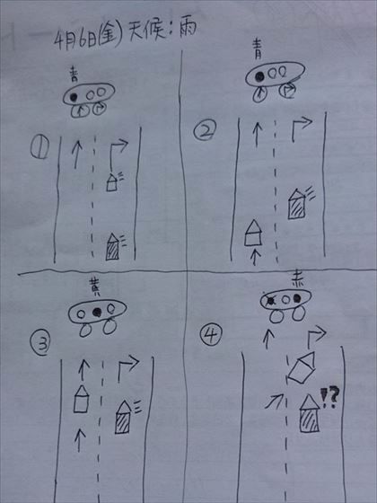また、商品を2つ破損させてしまったウエポンさんは、急ブレーキをかけてしまった時の様子を絵で分かりやすく教えてくれました。