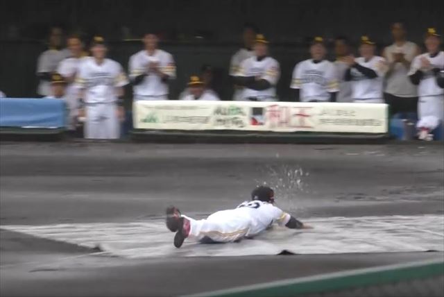 ヘッドスライディングをみせる堀内選手の姿も球場を沸かせます。