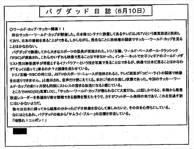 イラク日報、めちゃいいやつ(エモい)見つけました。2016年6月18〜19日。イラク復興支援群の「バグダッド日誌」シリーズは全部読みたい。のびのび書かれたコラム形式のエッセイ。テレビをつけ遅れて次は頑張ろうとか、米軍の幹部と事務所内でアメフトしてプリンター壊したりhttps://t.co/uPHN59ZQUo pic.twitter.com/9EbYmwF9zK