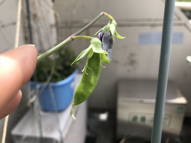 キレイなお花が咲いた後に絹さやが現れるみたいですね。いやぁ~、絹さやができるとは知らなかったなぁ!