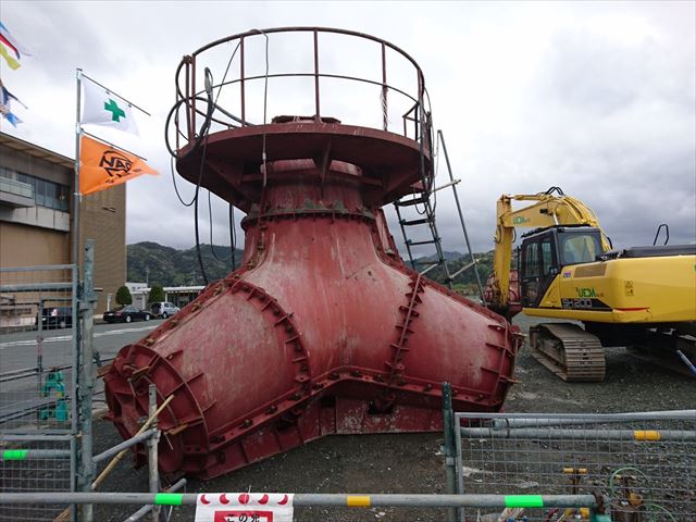 なるほどー!設置する現地で、赤色の機械に生コンクリートを流し込んで造っているんですね。