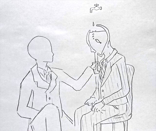 その一方で本当は大丈夫じゃないのに「大丈夫」と言っている右側の人は、もうストレスが入りきらず溢れ出ている様子ですね。もちろん本当に大丈夫ならいいんですけどね。