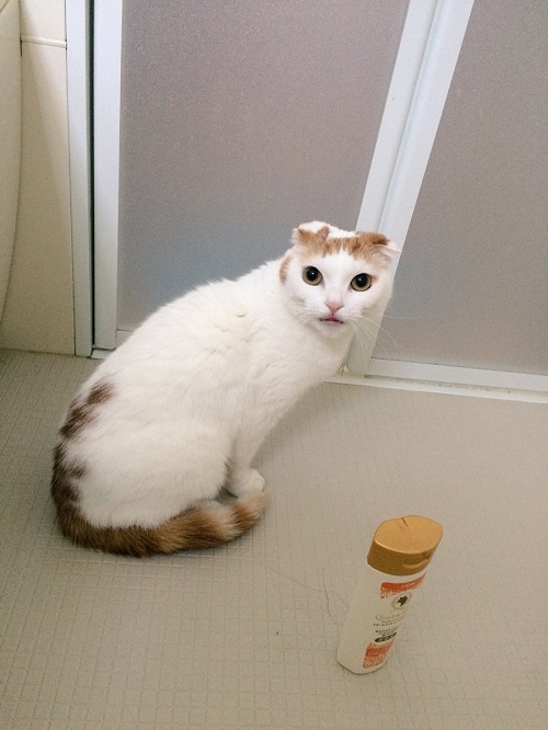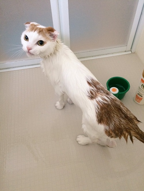 (※猫は基本的に自分で毛づくろいをして清潔さを保てますが、今回は換毛期の抜け毛が激しかったのと、シャワーを嫌がらなかったためシャンプーしてみたとのことです)